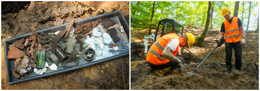 “We hebben met hulp van de EOD wél delen van (wijn)flessen, een lederen drager van een klewang (een kort militair sabel), scharnierpennen van een deur en een afgevuurde kogel van een Duits K98-geweer gevonden. Alles wijst erop dat hier destijds mensen zijn geweest, maar de schuilplaats met mogelijk twee lichamen bleef onvindbaar.”