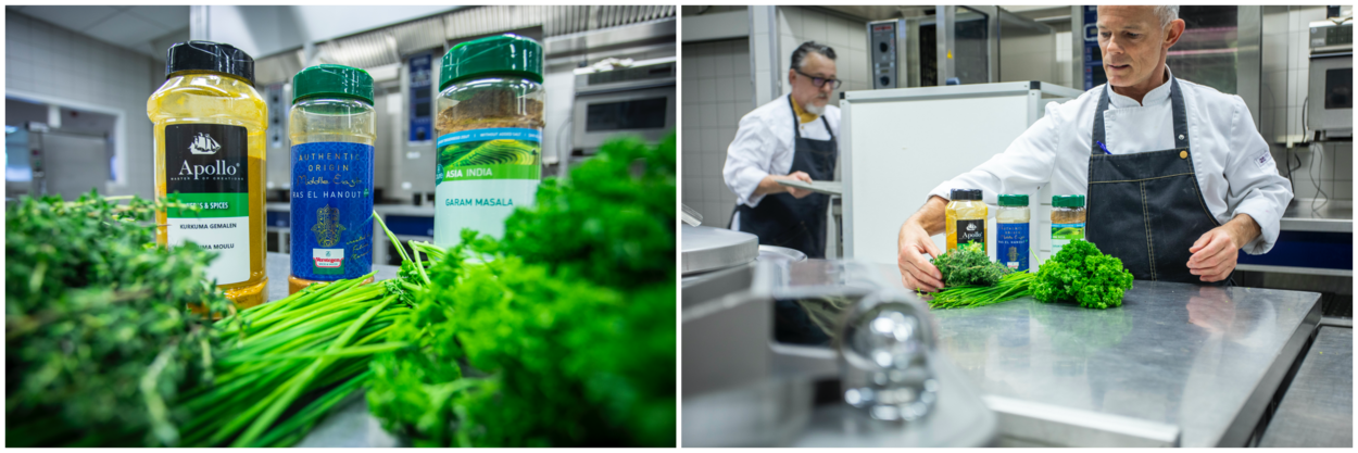 Samen met locatiemanager Casper Drost duikt Ackermans het magazijn in. Binnen een paar uur tijd staat er voor 120 man een maaltijd klaar.