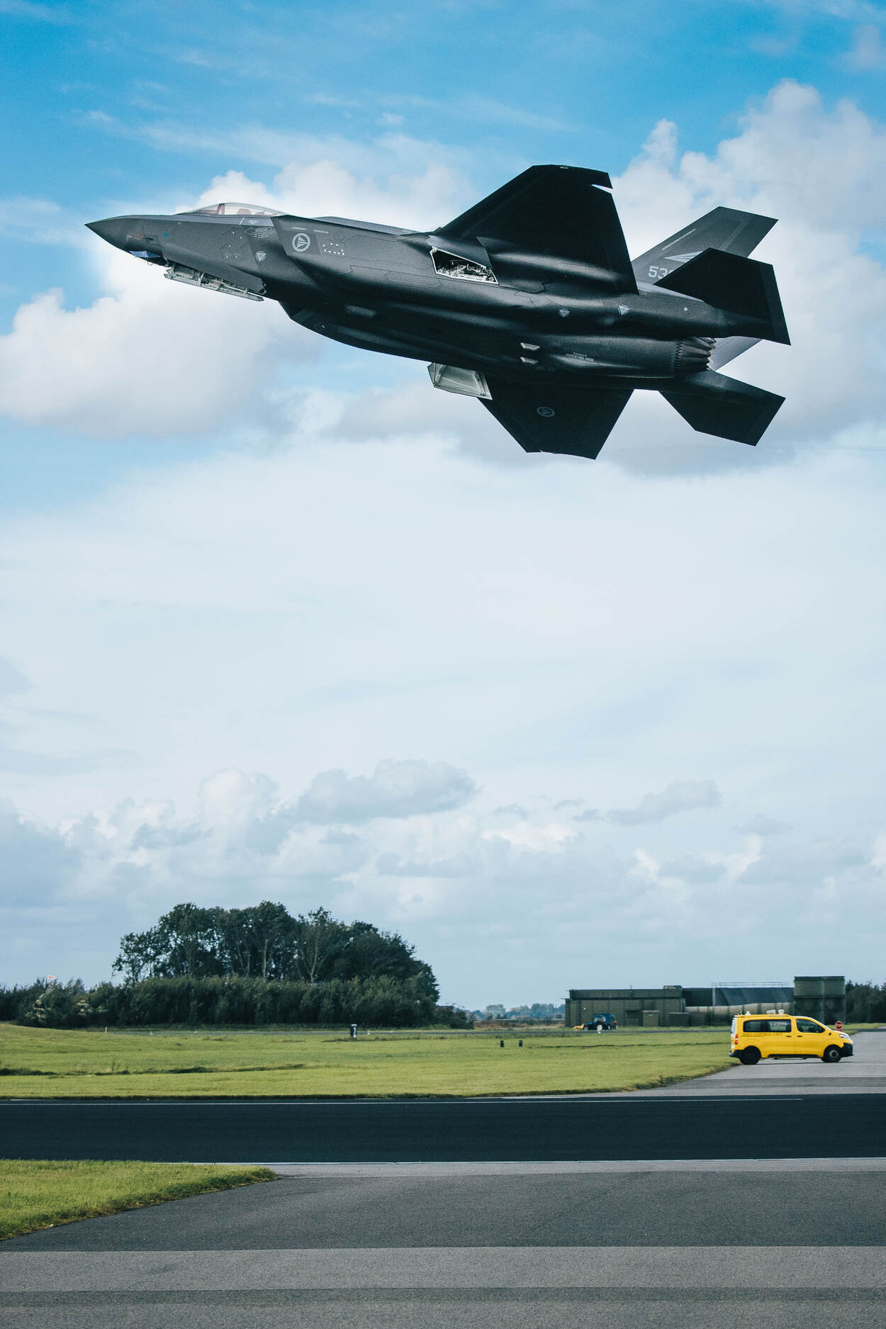 Sergeant Jan Dijkstra legde deze F-35 op Vliegbasis Leeuwarden vast, die meedeed aan de recent gehouden Weapons Instructor Course. Deze complexe training leidt vliegers op tot wapeninstructeur, waarna ze expert zijn in hoe je de sensoren en wapensystemen van een F-35 inzet.