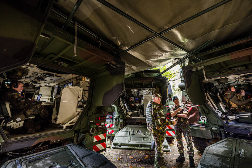 Op de Bernardkazerne in Amersfoort vond onlangs een test van het project Forward Command Post plaats. Daarbij draaide het vooral om snelheid en mobiliteit. Fotograaf is Paul Tolenaar.