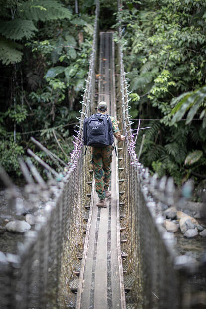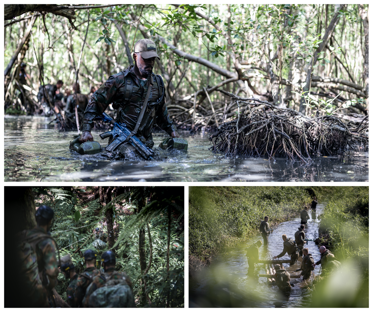 De mariniers en militairen van 13 Infanteriebataljon Luchtmobiel uit Assen leerden samen met hun Franse collega’s hoe zij zich het beste kunnen bewegen in bergachtig junglegebied. Over land, door het water, of door een combinatie van beide: modder. De Nederlanders werden hiervoor in hetzelfde jungletenue gestoken als de Fransen. De training is onderdeel van een jaarlijkse kennisuitwisseling tussen Nederland en Frankrijk. Het ene jaar organiseren de Fransen de training, het volgende jaar is het aan de Nederlandse mariniers in de West om iets uitdagends op poten te zetten.