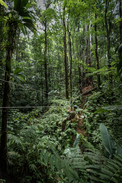 Natuurlijk, infanterie-optreden is voor de deelnemers geen onbekend terrein. Maar hoe navigeer je in een jungle waarbij je door de dichte begroeiing soms niet meer dan vijftig meter voor je uit kunt kijken? Als er iemand gewond raakt, welke materialen kun je gebruiken om iemand te verplaatsen? Naast praktische tips werden er ook ‘skills for life’ aangeleerd. Voor een rivieroversteek leerden de cursisten bijvoorbeeld verschillende knooptechnieken. Ook werd een ‘tokkelbaan’ gecreëerd waarmee militairen snel en effectief naar de overkant kwamen.