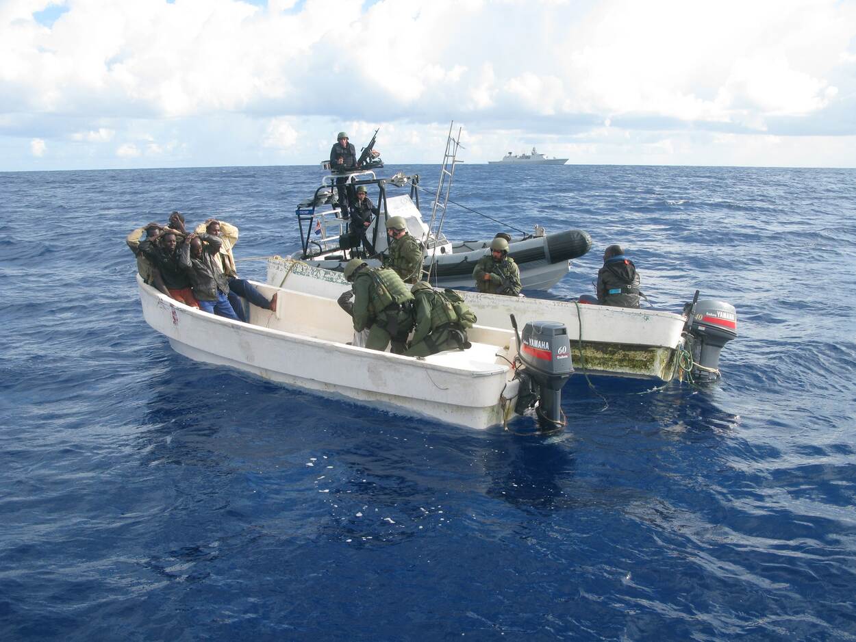 De NLMARSOF-operators houden regelmatig piratenschepen aan met daarachter, aan een lijn, snelle bootjes (skiffs). Daarmee worden aanvallen uitgevoerd. Frank: “Zodra de radar van de Tromp die verdachte bootjes signaleerde en er toestemming kwam, ging ons team er met RHIB’s op af om schip en bemanning te controleren.?