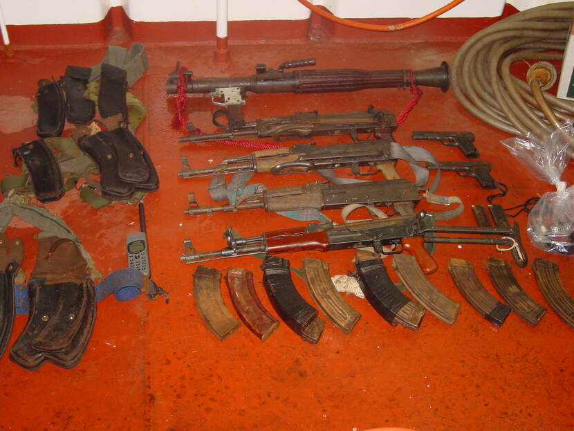 Uiteindelijk slaat het NLMARSOF-team de kapers in de boeien en brengt hen over naar Hr.Ms. Tromp. “Later vonden we op de brug van de Taipan een raketwerper. Waren de heren vergeten om de granaten vanaf hun moederschip mee te nemen...Gelukje voor ons”, glimlacht Frank.