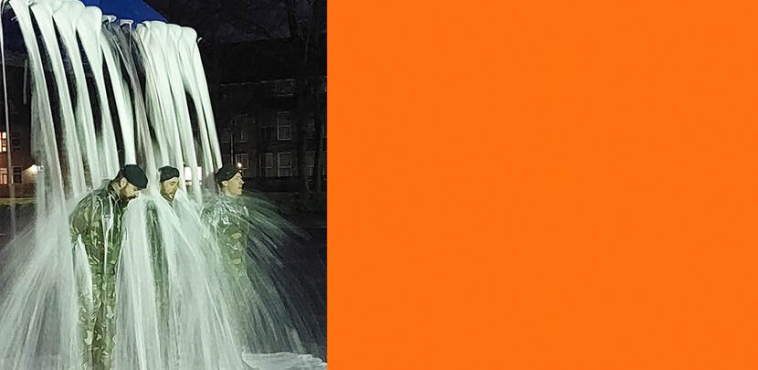 Het is een goed gebruik bij de krijgsmacht om bij militairen die worden bevorderd de nieuwe strepen of sterren nat te maken. Dat gebeurde onlangs ook bij de korporaals 1 Jeroen en Julien en eerste-luitenant Wesley van Geniewerken in Wezep. Om de nieuwe rangonderscheidingstekens 'nat te maken' zette de genie een laadschop met water in. En dat levert een bijzonder plaatje op. Een frisse bevordering dus!
