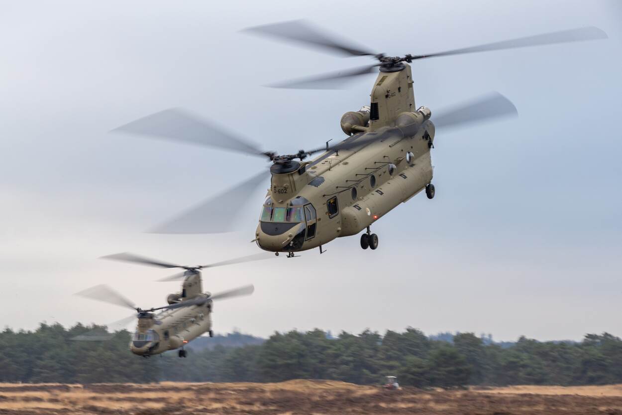 Fotograferen kun je aan sergeant-1 Cristian Schrik wel overlaten. Op de Ginkelse Heide nabij Ede knipte hij twee CH-47 F Chinook transporthelikopters, bezig met een simultaan trainingsmomentje.