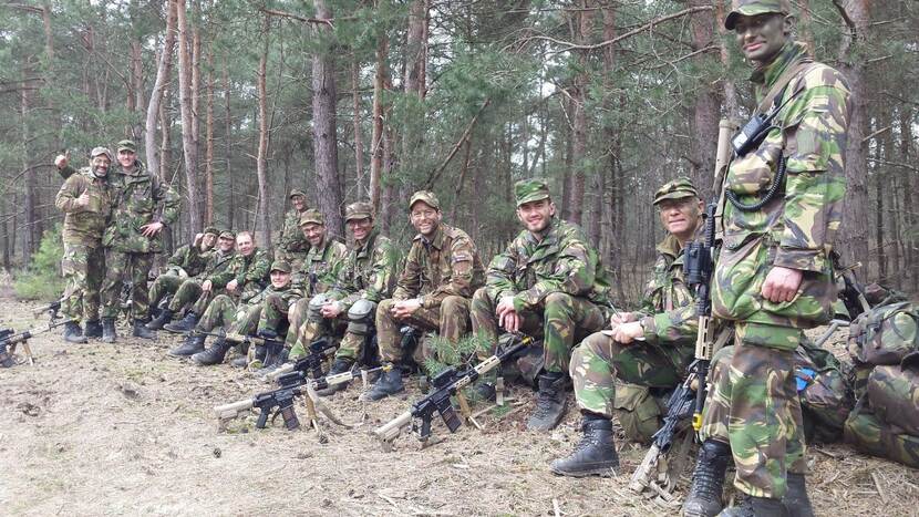 Groepscommandant sergeant-1 Cor Dijkgraaf van 20 Infanteriebataljon Nationale Reserve stuurde deze gezellig ogende foto uit 2019 van een oefening op het Beekhuizerzand. Niets bijzonders zou je denken, maar voor de deelnemers was het een dag om nooit te vergeten. Terwijl zij aan de boterham zaten gebeurde er op de naastgelegen snelweg A28 een ongeval. De groep van Dijkgraaf ging meteen ter plekke om hand- en spandiensten en eerste hulp te verlenen.