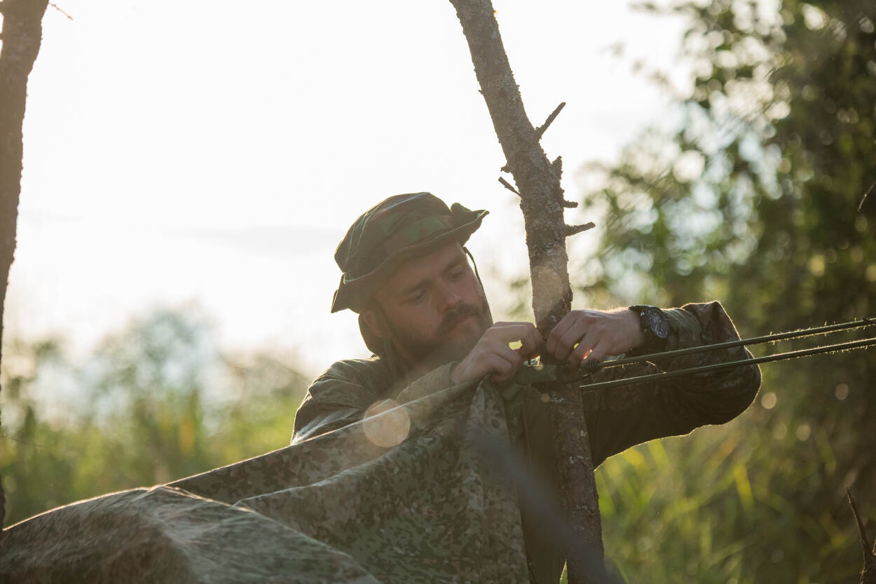 De vertrouwde pantservoertuigen zijn natuurlijk achtergebleven in Drenthe en dat is niet altijd leuk. Het zorgt er automatisch voor dat je bent overgeleverd aan de weergoden. Zoiets eenvoudigs als het goed opzetten van je tent is dan ineens erg belangrijk. Komt er een stortbui over, kun je je uitrusting niet even rustig laten drogen in een warm voertuig. Kapitein Sietze Geertsma: “We doen hier ontzettend veel ervaring op waardoor de rugzakken straks goedgevuld weer naar Nederland gaan.”