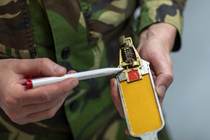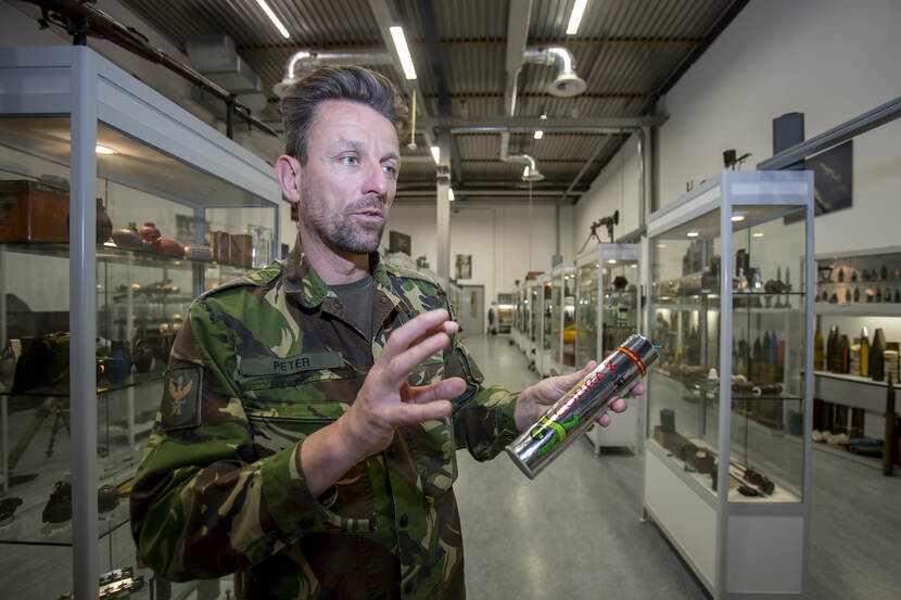 Een opdracht die eveneens als uniek de statistieken ingaat, was de ruiming van pamfletgranaten nabij Groesbeek. Deze vaak licht- of rookgranaten zijn zo omgebouwd dat je er in de lucht dunne velletjes papier mee kunt uitstoten, die zich over de vijandelijke linies verspreiden. De pamfletten bevatten teksten die militairen de wil tot vechten moeten ontnemen. “Pure psychologische oorlogsvoering”, zegt Peter. Het onklaar maken van een pamfletgranaat kun je volgens hem vergelijken met het openen van flessenpost. “Je hebt document in handen met daarop een boodschap uit het verleden. Hoe interessant is dat!