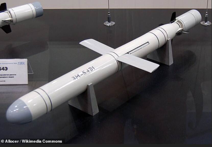 Een van de versies van het Russische Kalibr kruisvluchtwapen, waarmee grote schade wordt aangebracht in Oekraïne. De Kalibr wordt gelanceerd vanaf schepen en onderzeeboten. (Bron: Wikimedia Commons)