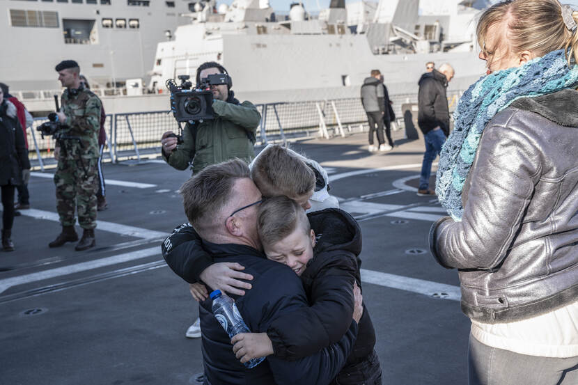Afscheid nemen van je vader die vier maanden gaat varen is moeilijk. Heel moeilijk. John van Helvert legde dit innige tafereel vast bij het vertrek van het fregat Zr.Ms. De Zeven Provinciën afgelopen zondag. Laten we onze militairen steunen én hun thuisfront.