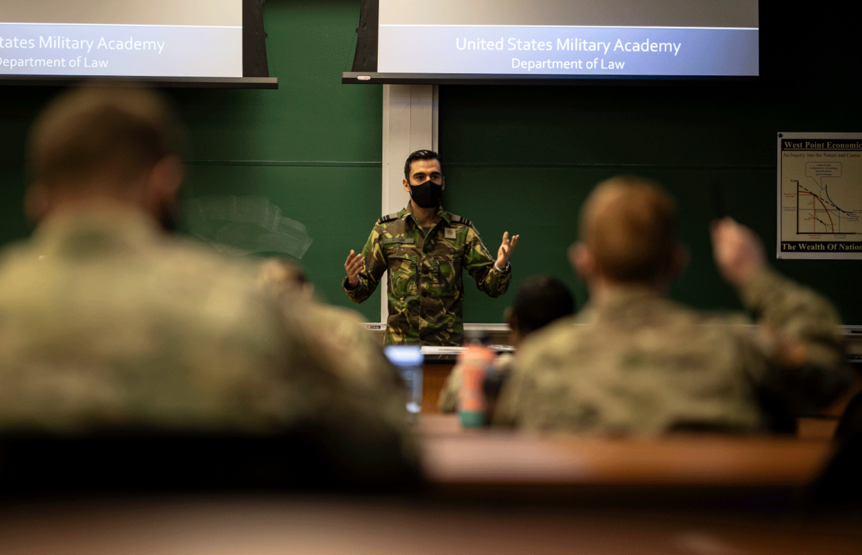 Onder de honderden professoren behoort luchtmachter Coban, die trouwens vloeiend Engels spreekt, tot het zeer selecte clubje niet-Amerikaanse docenten. Hij geeft hier sinds januari het vak ‘law of armed conflict’. “Oftewel humanitair oorlogsrecht”, verduidelijkt hij al wandelend over de campus. Constant groetend naar cadetten, die veelal met een grote beker koffie over het terrein lopen.