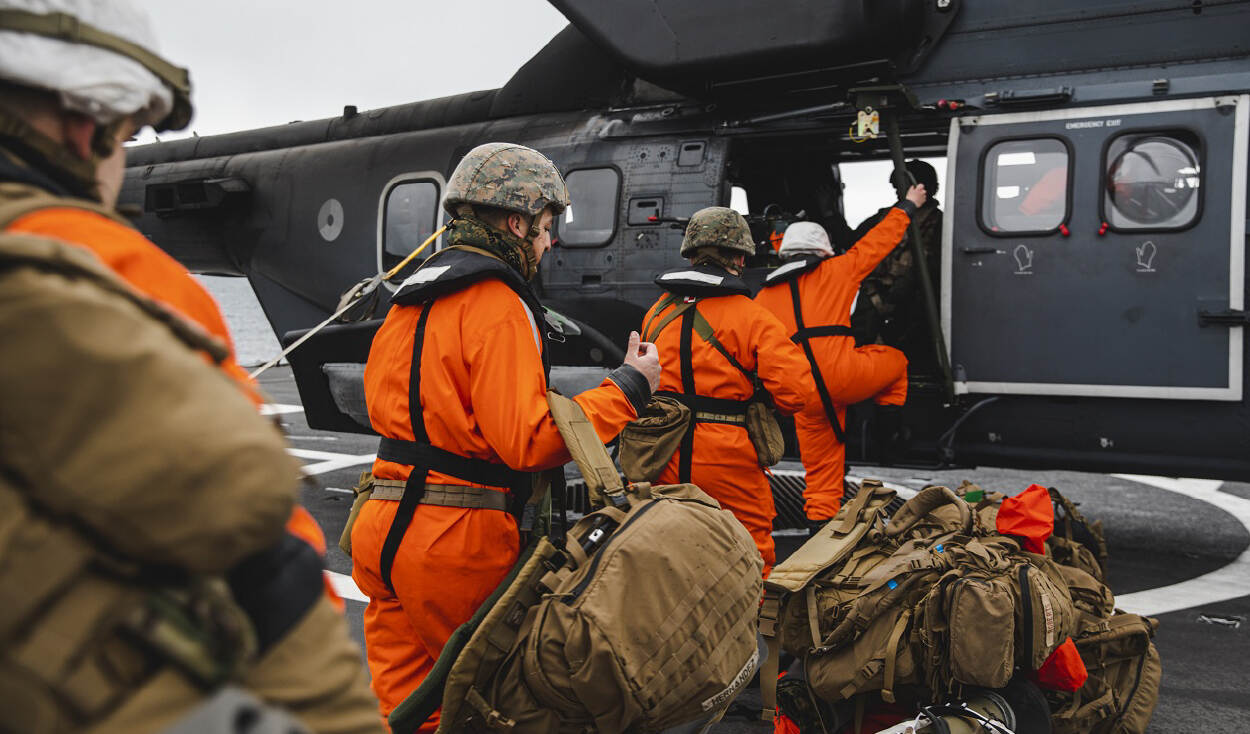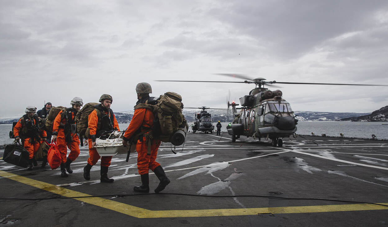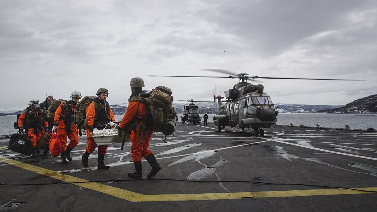 Dertigduizend militairen uit 27 landen doen tot 1 april mee aan de enorm grote NAVO-oefening Cold Response in Noorwegen. Een van de onderdelen deze week was de ‘casualty drill’. De bemanningen van Zr.Ms. Rotterdam, de geëmbarkeerde Cougar-helikopters en Amerikaanse mariniers oefenden met het overvliegen van slachtoffers en gewondenverzorging aan boord.