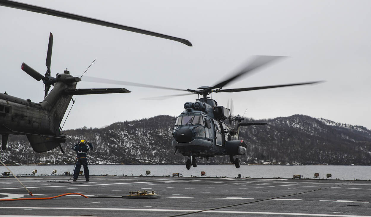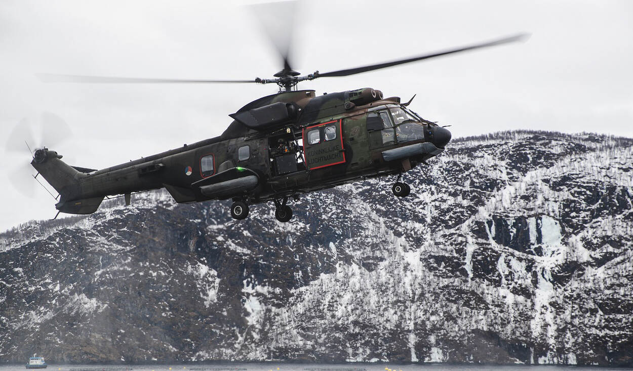 En daar gaat-ie. De Rotterdam beschikt momenteel over twee Cougars van de luchtmacht.