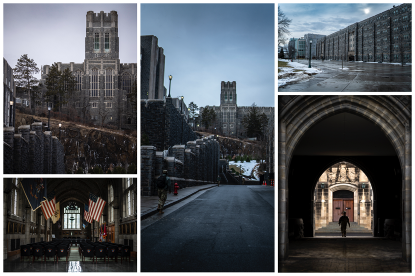 Interviewen doe je niet al wandelend of in de ‘coffeecorner’. Dat moet volgens de public affairs officer, die er constant bij is, in een afgesloten ruimte. Cadet Pakkam gaat ons voor in de bibliotheek. Twee statige, uit natuursteen gehouwen trappen omhoog richting een saai ogend zaaltje met lange tafels en opvallend veel grijze bureaustoelen. Het uitzicht over de ijzige Hudson River en de piekende Bear Mountains is verbluffend. Pakkam wil uit automatisme gaan zitten, maar zodra ze het zitvlak van de stoel voelt schiet ze omhoog. “Sorry, waar wilt u dat ik plaatsneem?”, vraagt ze correct.