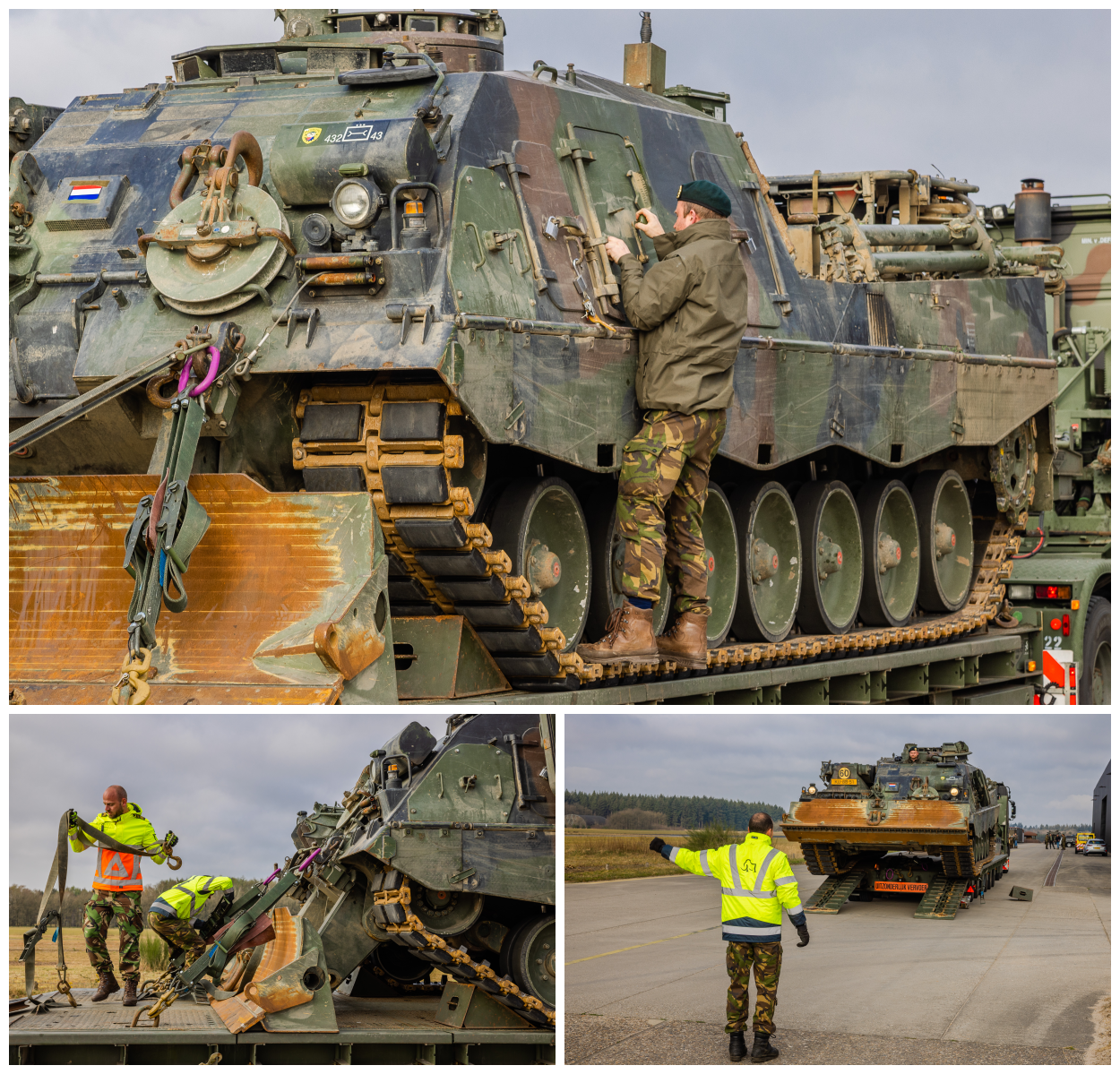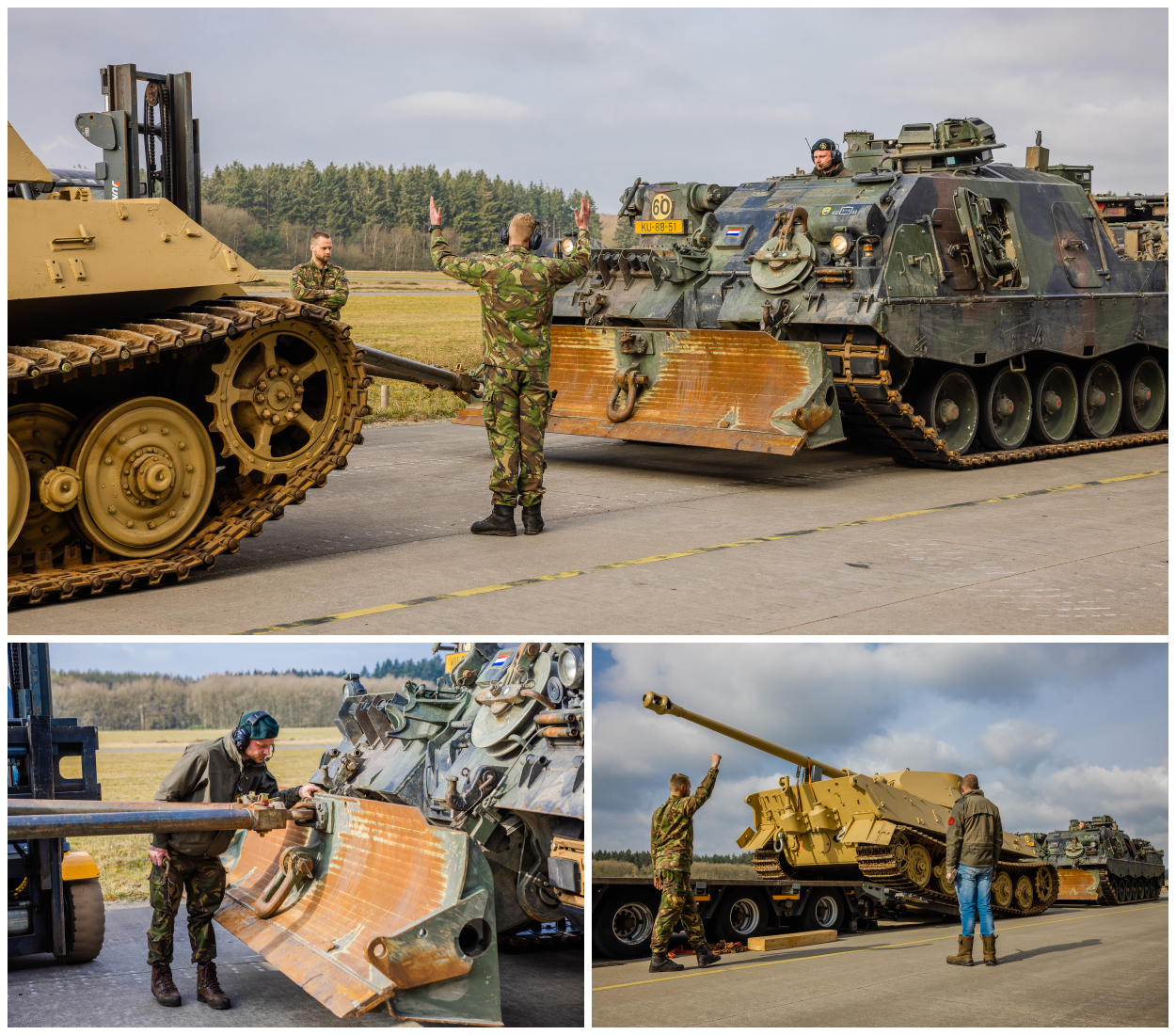 Het 43e kwam voor de gelegenheid speciaal naar Soesterberg, met net een oefening in Duitsland achter de rug. Gelukkig moeten de lier en kraan van de Buffel worden gekeurd, eveneens in Soesterberg, en werd van de nood een deugd gemaakt. Twee uur was er nodig om de klus te klaren en de Tiger II is inmiddels op z’n eindbestemming.