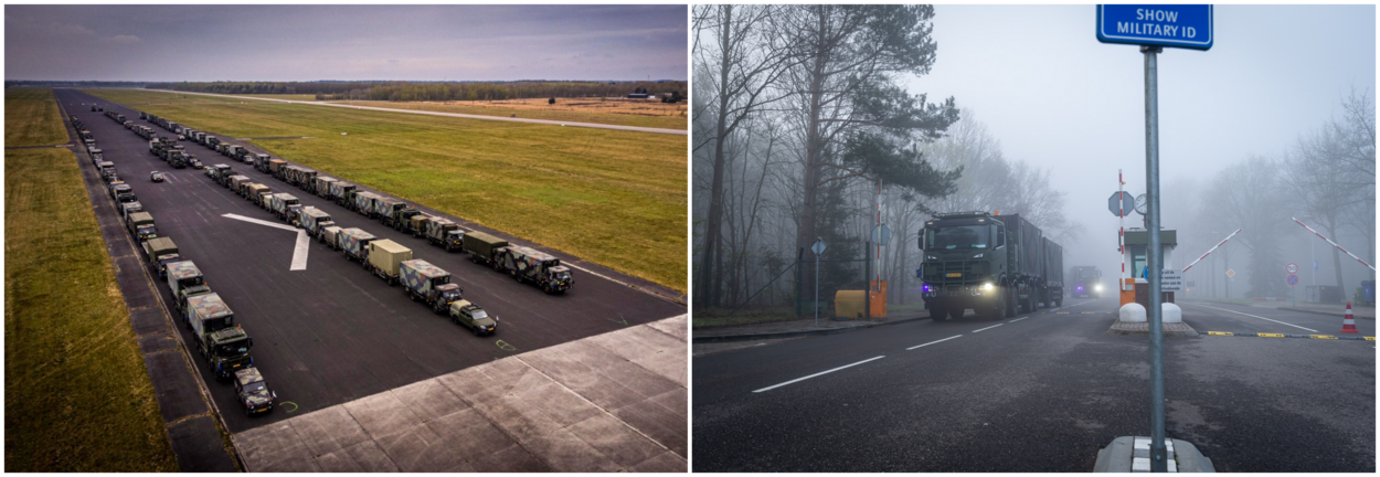 In een imponerende opstelling staan 99 voertuigen, 55 aanhangers en 150 militairen op de kazerne in het Limburgse Vredepeel klaar voor vertrek naar Slowakije. Bepakt en bezakt zullen de luchtverdedigers van 802 Squadron, ondersteuners van 800 Squadron en 133 Herstelpeloton komende dagen 1.300 kilometer afleggen. Dat klinkt misschien niet zo spectaculair, maar rijdend in colonnes met een gemiddelde snelheid van zeventig kilometer per uur duurt dat wel even. Bij het krieken van de dag worden daarom de eerste voertuigen al ‘aangeslingerd’ om niet veel later onder toeziend oog van de toegestroomde pers de kazerne af te rollen. De Patriots zijn los!