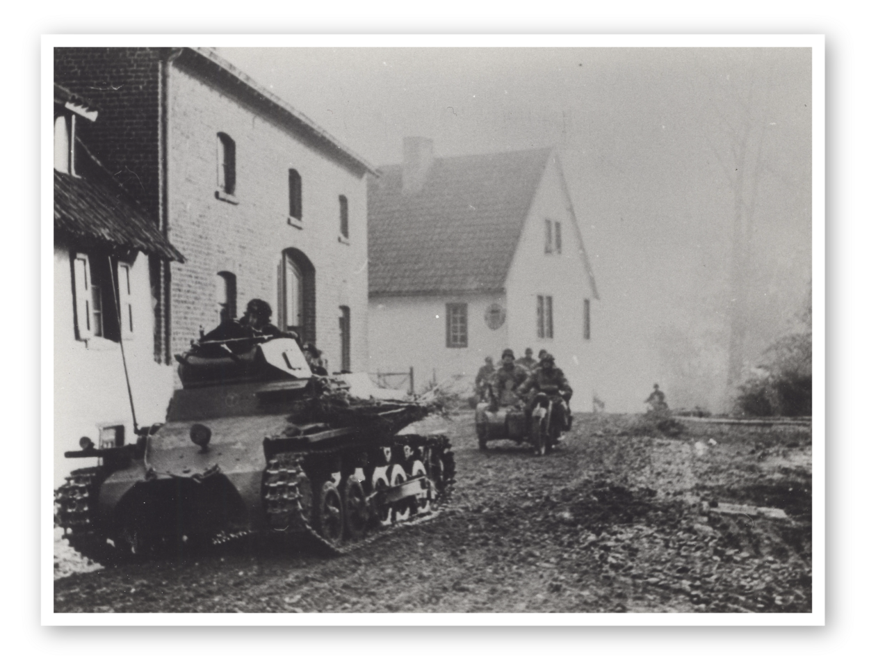 Duitse tanks en motorrijders trekken razendsnel op door het Zuid-Limburgse Valkenburg. Foto: NIMH.