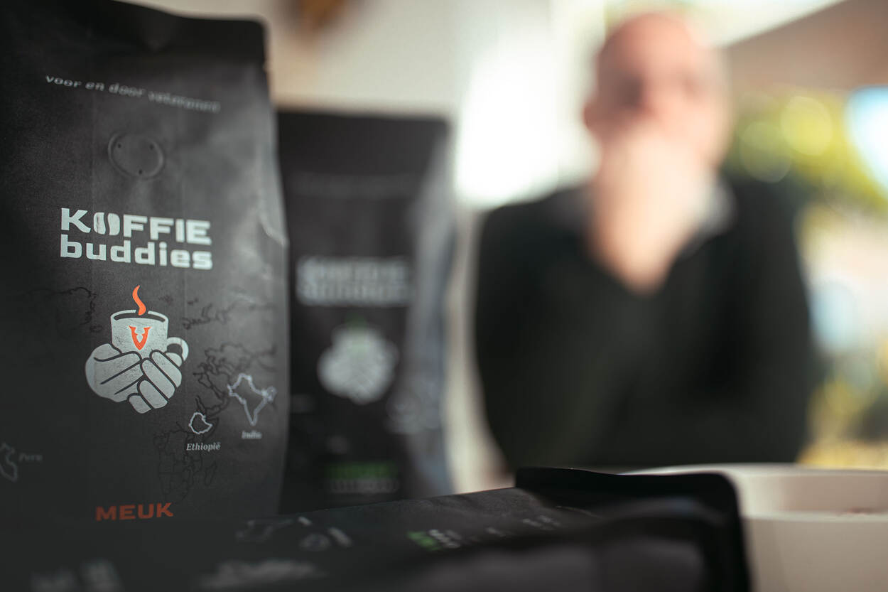 Wat ongetwijfeld bijdraagt aan de populariteit van Koffiebuddies, erkent de ondernemer, is het feit dat er aan de verkoop een goed doel is gekoppeld. De helft van de opbrengst van Koffiebuddies gaat naar de Stichting Mariniers Ziekenboeg, een organisatie die zich inzet voor oud-mariniers en hun familieleden. “Dus je hebt lekkere koffie én draagt bij aan een goed doel.”