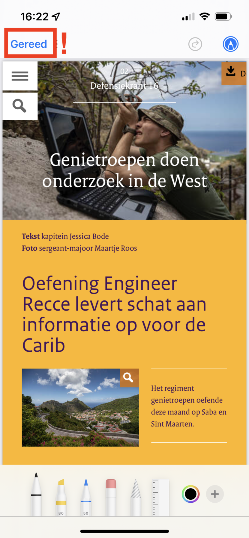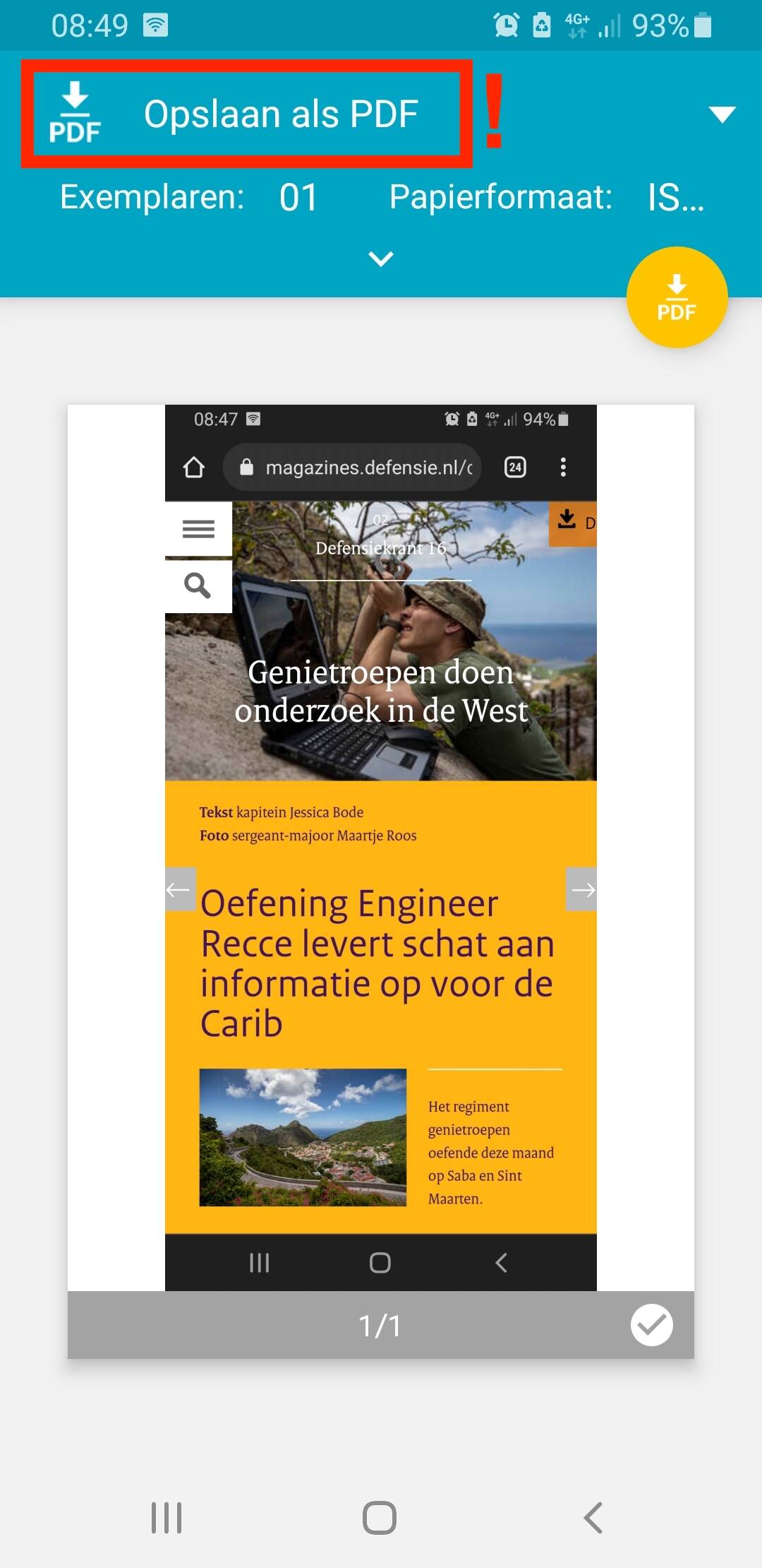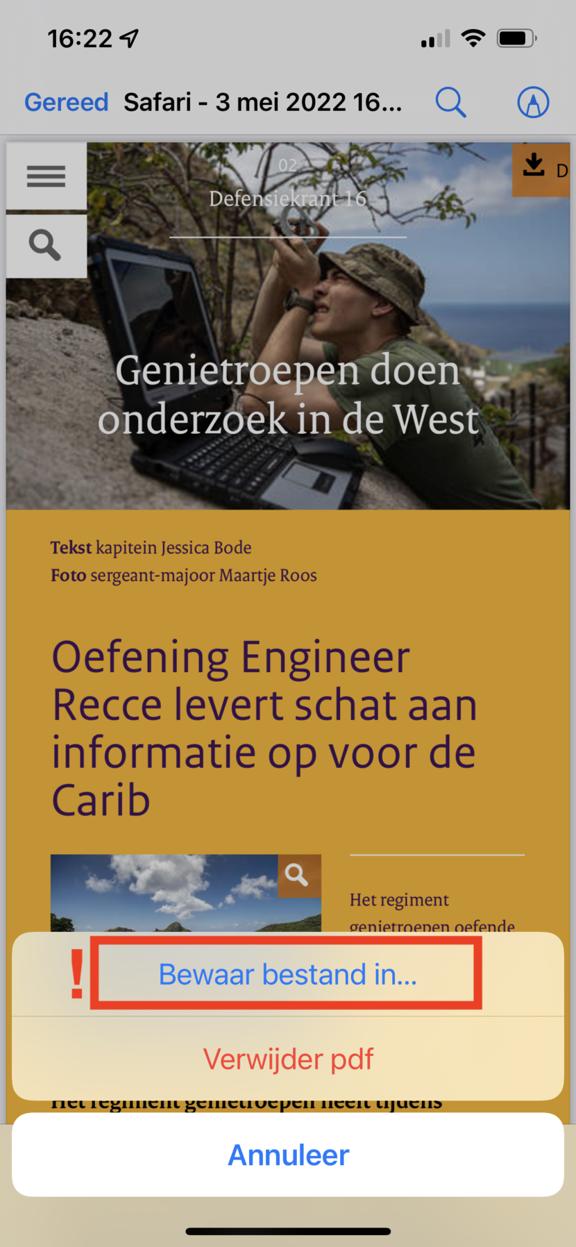 Regelmatig krijgen we de vraag of artikelen in de Defensiekrant ook opgeslagen kunnen worden als PDF. We hebben hier zelf geen functie voor op de pagina, maar met hulp van Android en iOS lukt het toch.