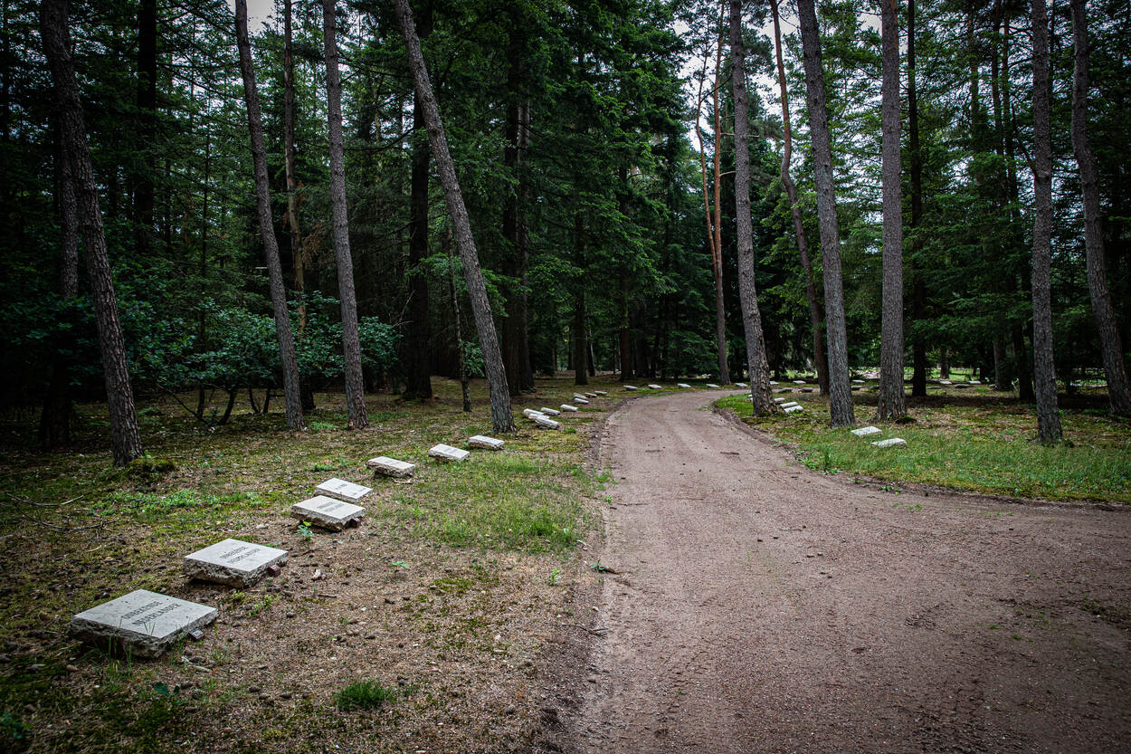 Lopend over het Ereveld vertellen zij het ene verhaal na het andere over de inmiddels geïdentificeerde stoffelijke resten. Zoals van Gerrit-Jan Leuvelink, aan het einde van de oorlog omgekomen door uitputting en ziekte op de Reichswerke Hermann Göring. “Van zijn echte naam vonden we in de Duitse archieven vijf verbasteringen. Toch wisten we na lang speurwerk om wie het moest gaan.”