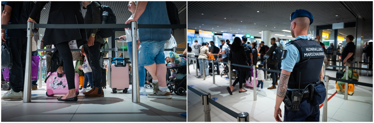 “We hebben acht aankomst- en vertrekposten waar marechaussees zitten. Wij bepalen of iemand het Schengengebied in of uit mag en dragen bij aan het bestrijden van migratiecriminaliteit, terrorisme en grensoverschrijdende criminaliteit. Afhankelijk van waar het zwaartepunt op dat moment ligt, verdelen we onze capaciteit over deze posten. We plannen nooit op honderd procent balievulling. Er moeten altijd collega’s beschikbaar zijn die bij twijfel over bijvoorbeeld de echtheid van documenten tweedelijnsonderzoeken uit kunnen voeren. Daarnaast hebben onze mensen ook recht op hun wettelijke pauze. Het werk aan de grens is ontzettend intensief, je moet constant gefocust zijn. We doen er alles aan om onze bezetting in te richten op de verwachte passagiersaantallen. Maar de hele luchthaven van muur tot muur bemannen is gewoon niet realistisch.”