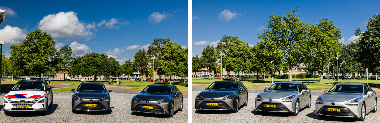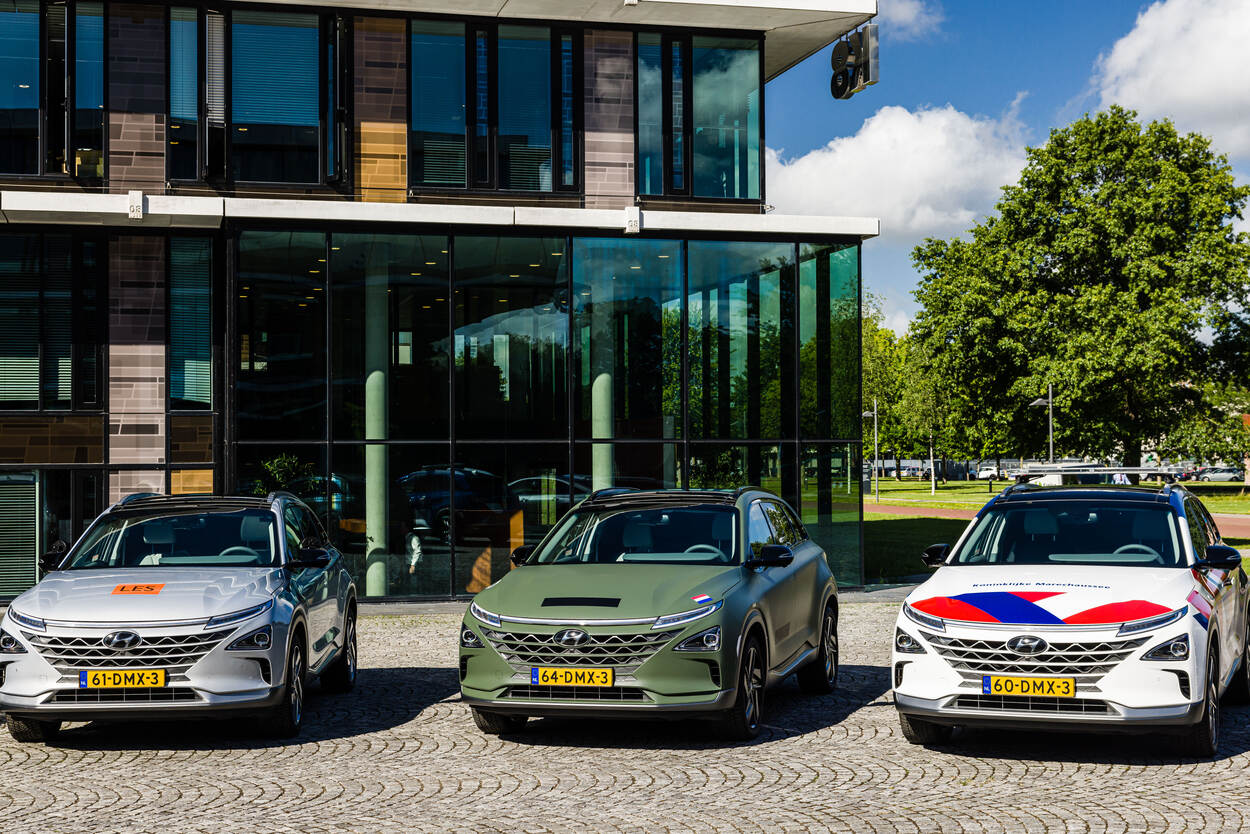 Het gaspedaal hoeft maar lichtjes te worden ingetrapt en de auto zoeft soepeltjes weg. Geruisloos, als wuivend riet. De wegligging is zeer comfortabel. Accelereren gaat lekker vlot. En vergeet het uiterlijk van deze nieuwe generatie waterstofauto’s niet. De Toyota Mirai en Hyandai Nexo, die Defensie nu aan het wagenpark toevoegt, zijn 'knappe' verschijningen. Zeker de matte, legergroene demo-uitvoering.