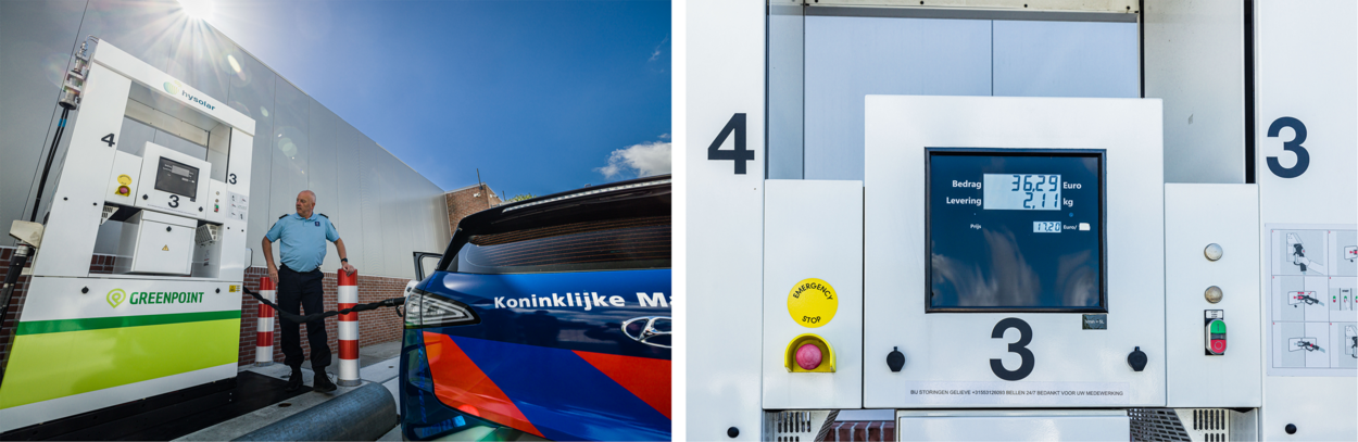 Tanken met een waterstofauto kan op circa dertien locaties in Nederland. Een kilo kost om en nabij de zeventien euro.