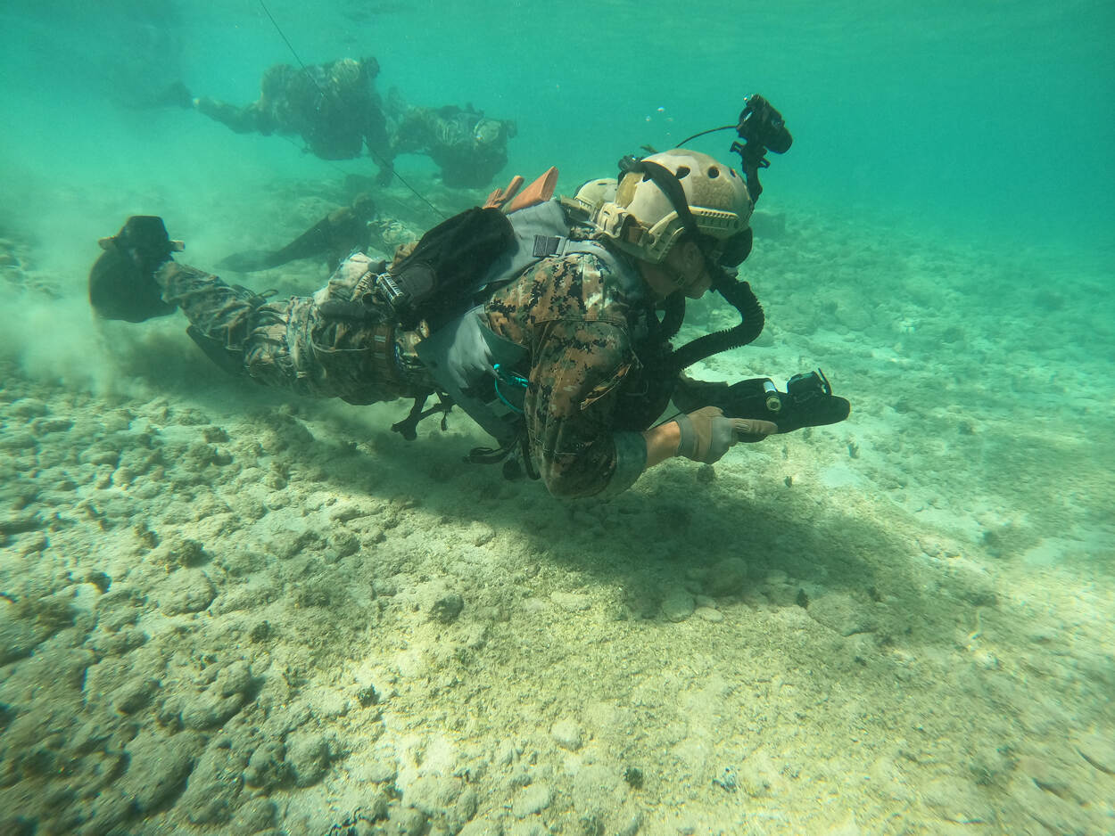Toeristen reizen speciaal naar Aruba om te kunnen genieten van de onderwaterwereld. Ook Amerikaanse mariniers doen dat regelmatig, maar wel met een andere bedoeling. Al sinds jaar en dag trainen de marines met hun Nederlandse collega's van 32nd Raiding Squadron. Het ene jaar in North Carolina in Amerika tijdens Caribbean Urban Warrior. Het andere jaar in Aruba bij Caribbean Coastal Warrior. Voor de foto ging Lance Corporal Ryan Ramsammy kopje onder.