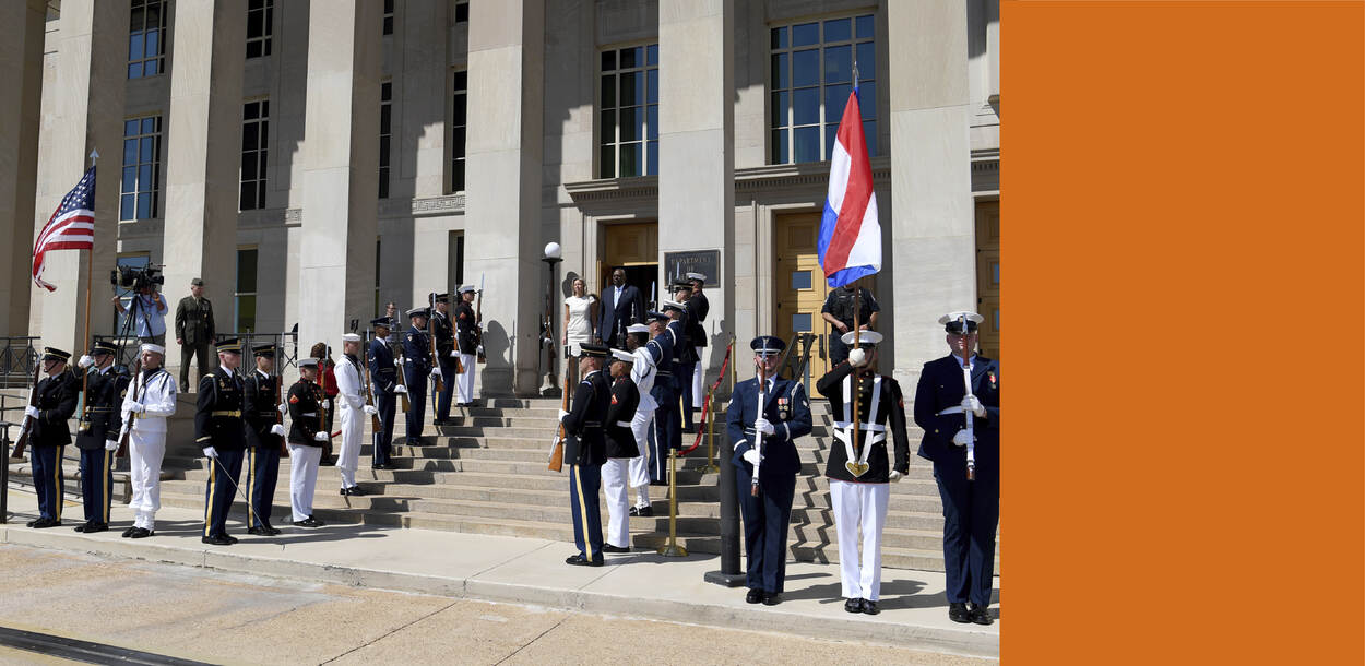 Minister Kajsa Ollongren bracht woensdag een bezoek aan het Pentagon, waar ze met veel ceremonieel werd ontvangen door haar Amerikaanse collega Lloyd Austin III.