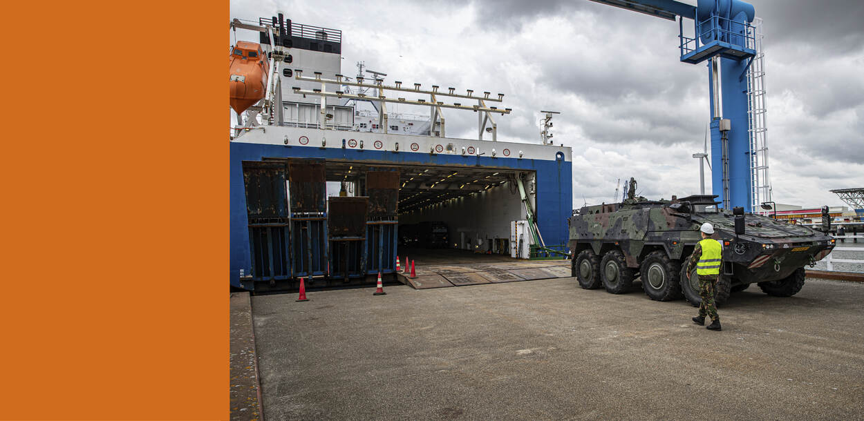 Defensie heeft deze week het eerste, ‘eigen’ roll-on roll-off-schip in gebruik genomen. Het vaartuig, de New Amsterdam, is direct vertrokken naar het Litouwse Klapeida, waar het in de haven containers vol goederen en rollend materieel lost voor de NAVO-inzet eFP. De spullen zijn nodig om de volgende rotatie mogelijk te maken.