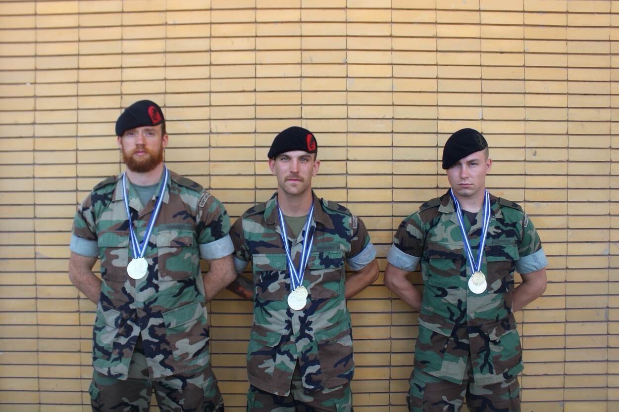 De ploeg van sergeant-adelborst Twan (midden) pakte goud.