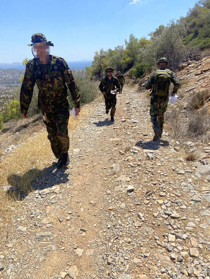 “Vooral het oriënteren had plaats onder extreme weersomstandigheden: met 34 graden tien kilometer in ruig, heuvelachtig en droog terrein. Een maand eerder vond in een deel van het gebied nog een heftige bosbrand plaats”, zegt het hoofd van de delegatie kapitein der mariniers (reserve) Marco.