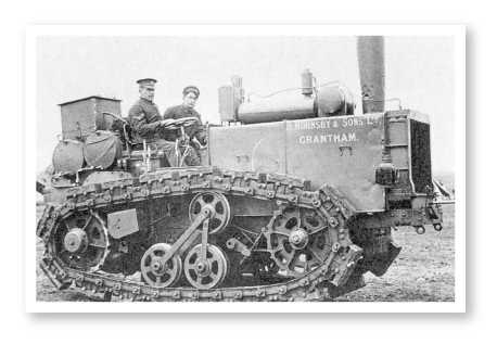 De Hornsby 1909 War Office Tractor deed bij velen onafhankelijk het idee opkomen van pantserrupsvoertuigen.