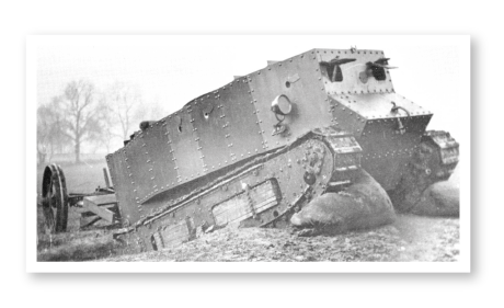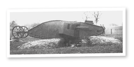 Het eerste voltooide tankprototype uit de geschiedenis heet Little Willie, een houten model van een voertuig waarvan de rupsbanden van voren in een punt schuin omhoog staken en over de bovenkant weer terugliepen. Hiermee ontstond het karakteristieke parallellogram-vormige model van de eerste tank.