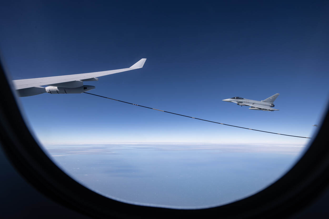 De Eurofighters hebben meer moeite met de procedure dan de andere gevechtsvliegtuigen. Met een boom wordt de te tanken kist naar de juiste positie geleid door lampjes onder het vliegtuig. Via de andere methode komt het aan op de skills van de vlieger die op de millimeter nauwkeurig moet mikken. Uiteindelijk lukt het hen aan te pikken. Om ook daarna te verdwijnen in de blauwe ‘oneindigheid’.