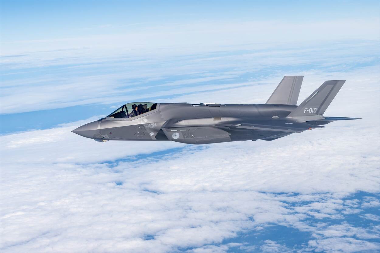Niet veel later naderen de eerste drie zwarte stipjes de tanker. De F-16’s hangen pijlsnel parallel aan de linkervleugel. Daarna zakken ze één voor één onder de kist om hun ‘buik’ te vullen via de boom. Hetzelfde geldt voor de drie F-35’s die aan de rechterkant naderen. Stil en stabiel hangen ze daar, ongekend dichtbij. Een geweldig gezicht. Je kunt de mannen bijna zien ademen. Als de kerosinehonger is gestild gaan ze er net zo snel vandoor als ze gekomen zijn. Maar niet voordat ze eerst even naar ons zwaaien.
