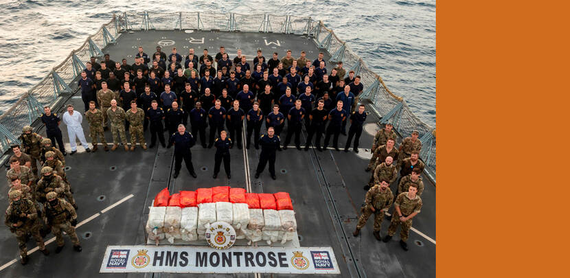 De bemanning van het Britse fregat HMS Montrose heeft opnieuw een fikse slag toegebracht aan de drugshandel in het Midden-Oosten. Deze week werd bijna negenhonderd kilo crystal methamphetamine onderschept, verborgen aan boord van een traditioneel zeilschip in de Arabische Zee.