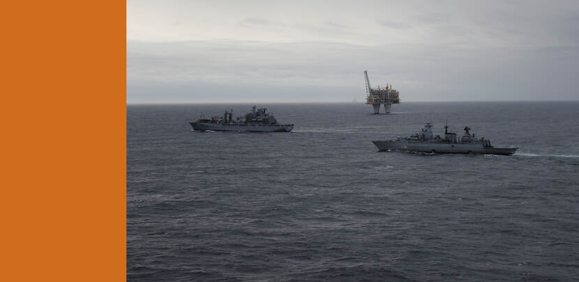 De Duitse marine patrouilleert met de schepen 'Berlin' en 'Schleswig-Holstein' sinds kort langs Troll A; het enorme gasproductieplatform voor de exploitatie van aardgas in de Noordzee in Noorwegen. Ook wordt een P-3C Orion patrouillevliegtuig ingezet.