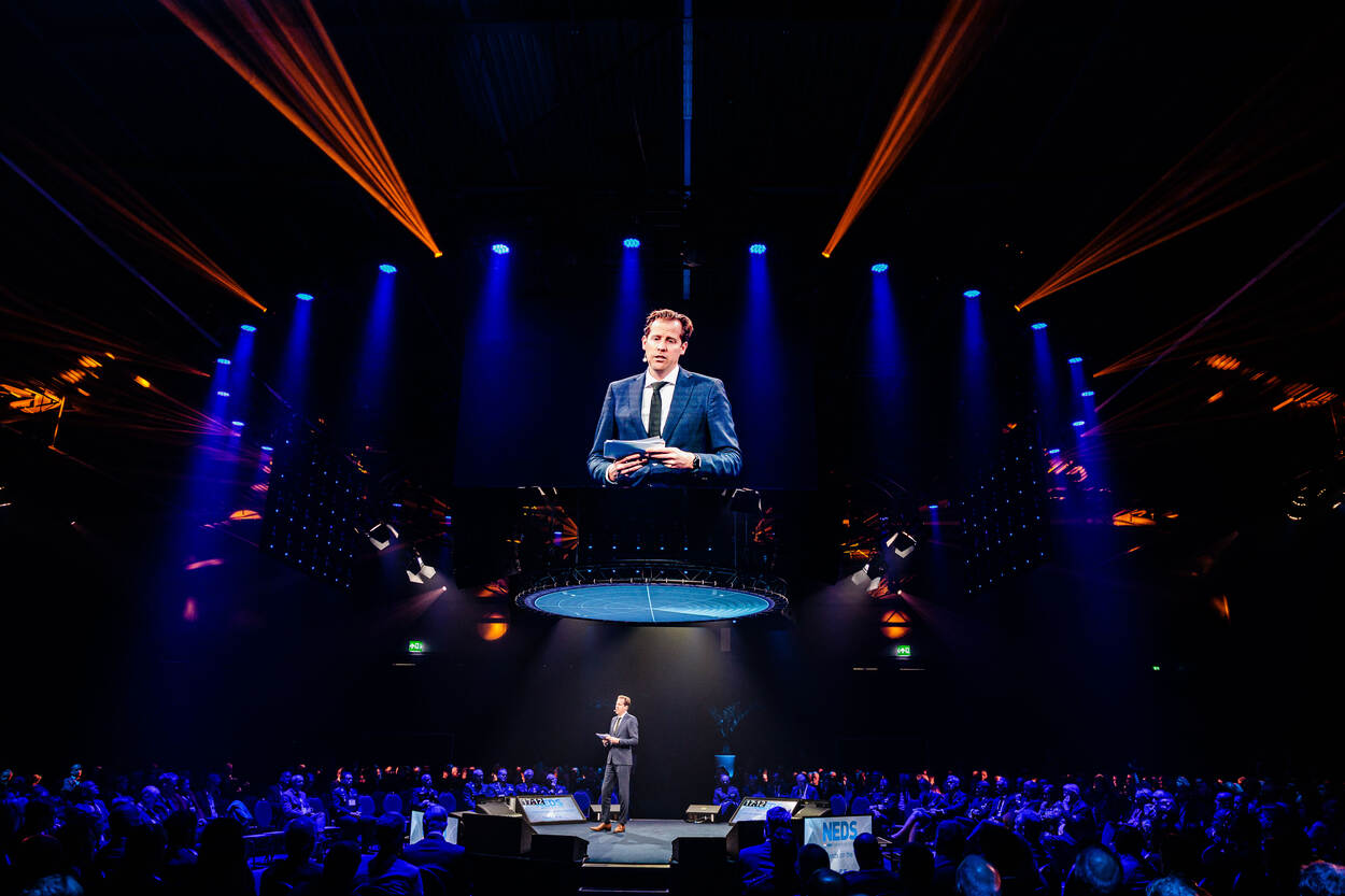 “Iedereen beseft weer dat Nederland én Europa hun militair-industriële slagkracht moeten versterken”, stelt defensiestaatssecretaris Christophe van der Maat in zijn toespraak tot de volle zaal van het symposium.