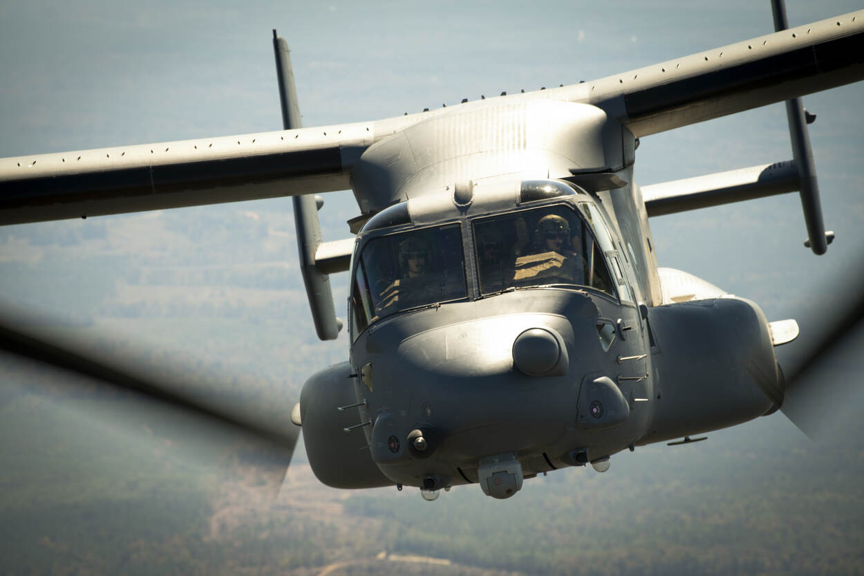 Een bijzondere foto van een Amerikaanse CV-22 Osprey (visarend). Het gaat hier om een tiltrotor vliegtuig dat verticaal kan stijgen en landen. Onder meer in gebruik bij de Air Commandos van 8th Special Operations Squadron (SOS). Zij zijn gespecialiseerd in infiltratie, exfiltratie en bevoorrading van special forces in vijandelijk gebied. Airman Andrew Ancona wist deze inkomende Osprey perfect in beeld te vangen tijdens een training van 8th SOS.