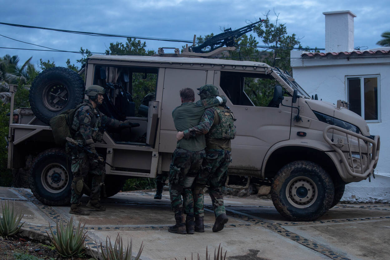 In de oefening Tres Kolos op Aruba hebben Nederlandse, Franse en Amerikaanse mariniers onlangs getest hoe ze het beste kunnen samenwerken in diverse scenario's. Uitwisseling van kennis, vertrouwd raken met elkaars materiaal en procedures moest leiden tot een hecht partnerschap. Op de foto hielpen Nederlandse mariniers bij de medische evacuatie van een oefengewonde. Foto: U.S. Marine Corps photo by Lance Cpl. Deja Thomas.