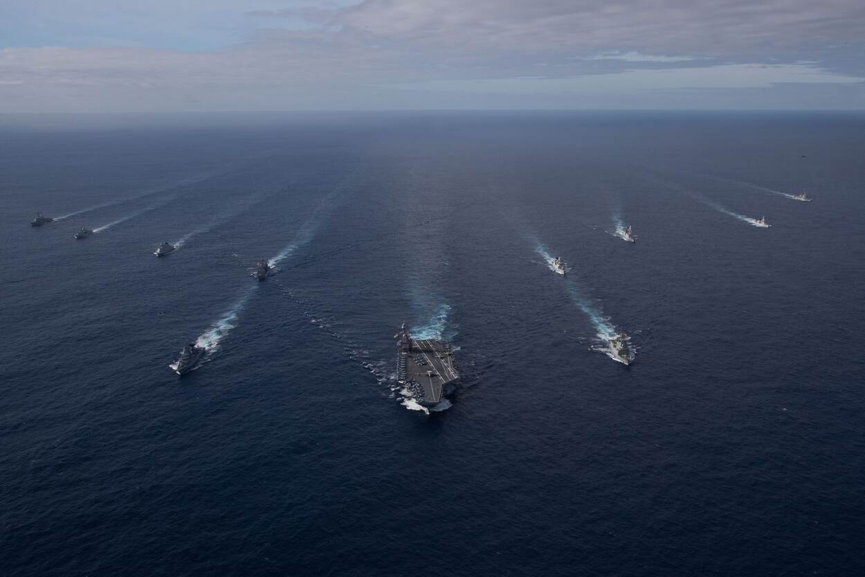De USS Gerald R. Ford (CVN78) is het nieuwste en meest geavanceerde vliegdekschip van de Amerikaanse marine. Het reusachtige schip vormt het hart van de Gerald Ford Carrier Strike Group (CSG); een vlootverband dat bestaat uit een guided-missile cruiser USS Normandy (CG60), de guided missile destroyers USS McFaul (DDG74) en de USS Thomas Hudner (DDG116). Het gezelschap opereerde de afgelopen weken samen met schepen van bondgenoten Canada, Denemarken, Duitsland, Frankrijk, Spanje en Nederland tijdens oefening Silent Wolverine in de Atlantische Oceaan. Foto: U.S. Navy photo by Mass Communication Specialist 2nd Class Jackson Adkins.