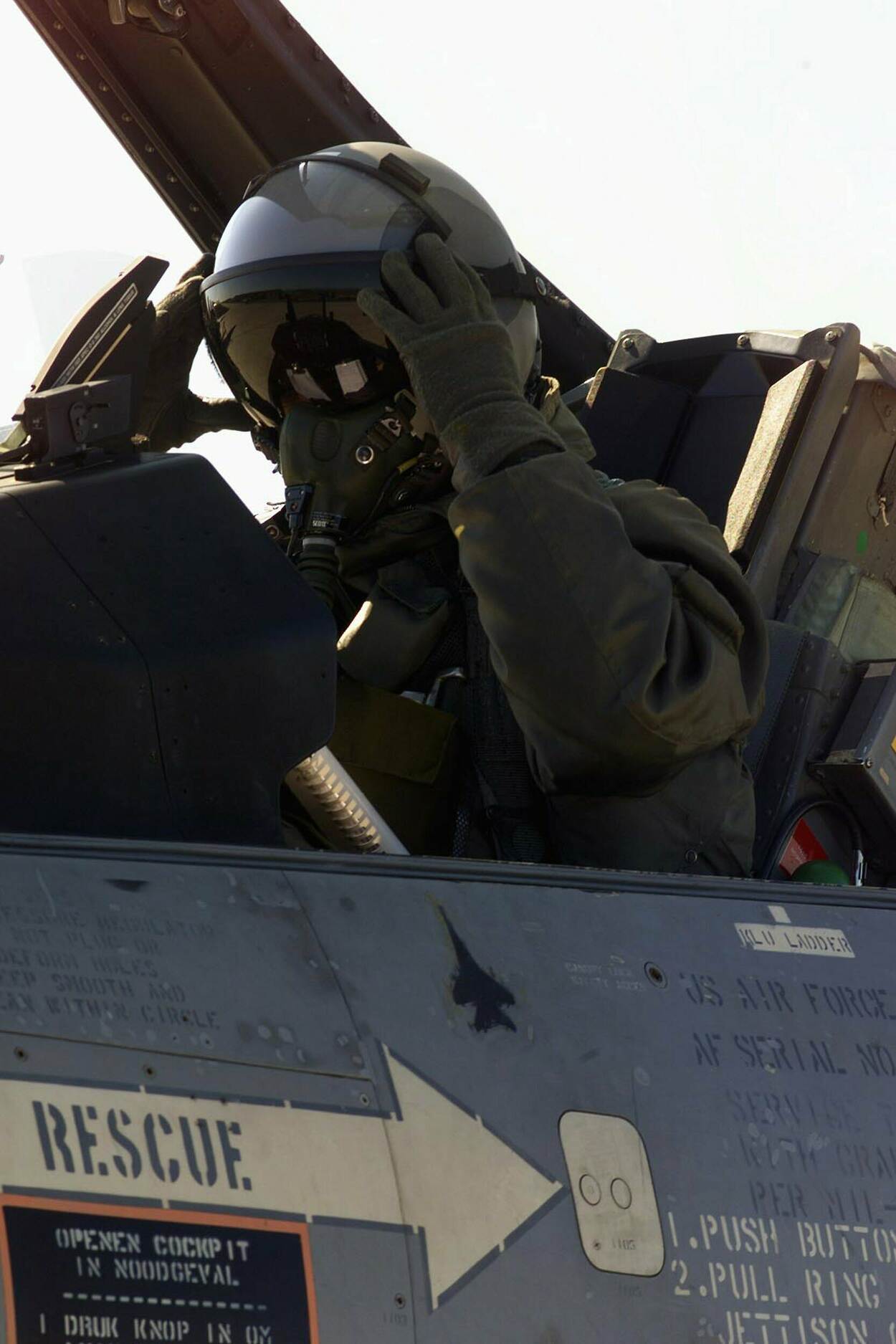 Na het eten gaat de vlieger om kwart voor acht naar zijn toestel. Hij krijgt de J-063 toegewezen. Het toestel is, afgezien van het ingebouwde 20 mm snelvuurkanon, bewapend met vier AIM-120 AMRAAM radargeleide lucht-lucht raketten en voorzien van twee brandstoftanks en een ALQ-131 pod voor elektronische storing.