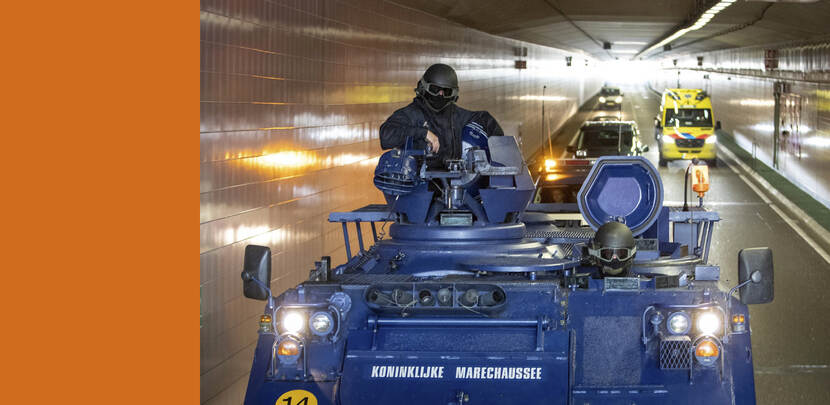 Marechaussee oefent met YPR's op de weg