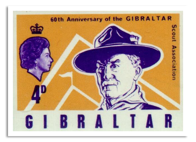Baden-Powell is wereldwijd een begrip, zoals te zien op deze postzegel van Gibraltar.