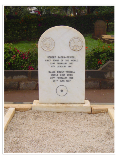 Op het graf van Baden-Powell en zijn vrouw zijn, naast het scouts- en het gidsenlogo, ook twee concentrische cirkels te zien. Die verwijzen naar het door scouts gebruikte sporensysteem om te navigeren. Dit teken heeft als betekenis ‘Going home', vrij vertaald: Ik keer terug naar huis.