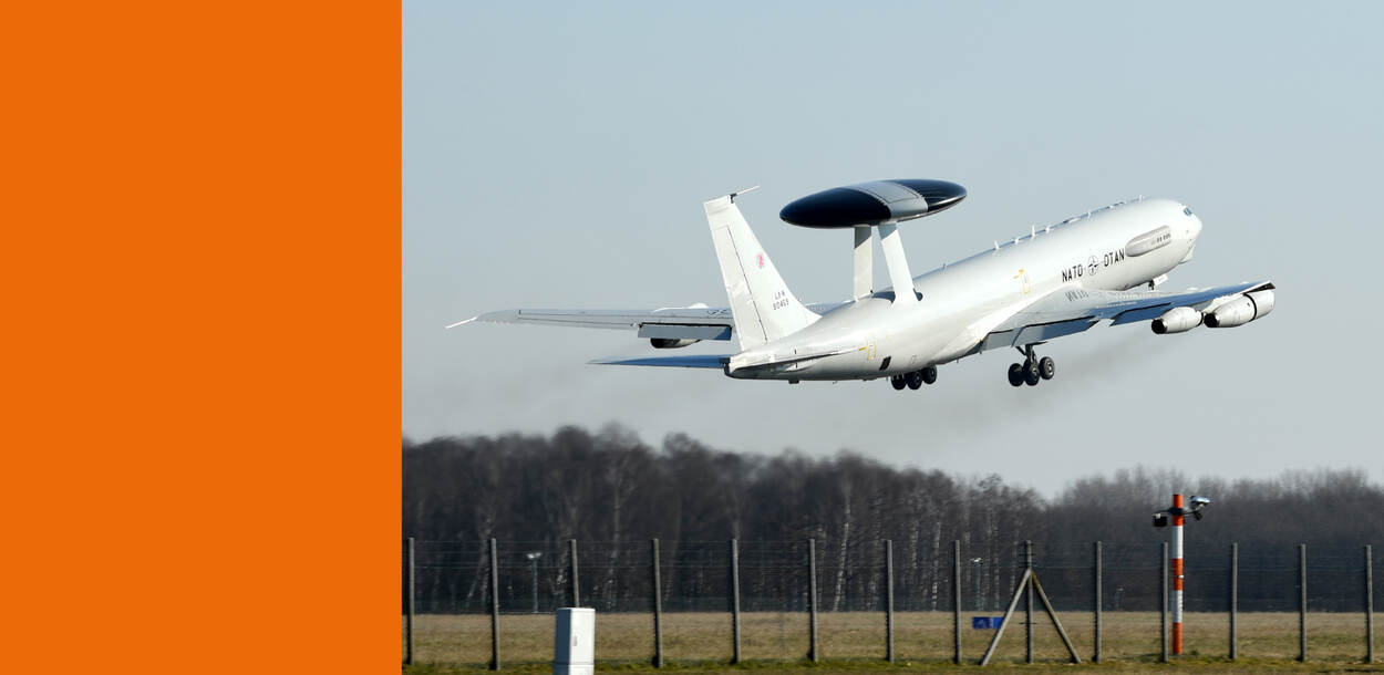 De toestellen behoren tot de vloot van veertien NAVO-surveillancevliegtuigen. Sinds 1982 vliegt de NAVO met radarvliegtuigen vanaf de Duitse NAVO-vliegbasis Geilenkirchen. Vanaf februari vliegt AWACS structureel patrouilles boven Oost-Europa en de Baltische zee om Russische militaire activiteiten in het vizier te krijgen. Dankzij de radarschotels op de vliegtuigen kan AWACS vierhonderd kilometer ver in vijandelijk gebied kijken.