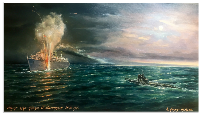 Militair commandant Wilhelm Zahn wil de kans op een aanval door een Sovjet-onderzeeboot verkleinen en adviseert kapitein Friedrich Petersen om dicht bij de kust in ondiep water te blijven, en geen navigatieverlichting te voeren. Petersen zoekt echter diep water op omdat hij overbeladen is en omdat hij vreest voor zeemijnen en aanvallen door vliegtuigen. Ook vaart hij langzaam omdat de Wilhelm Gustloff bij een eerder bombardement beschadigd was geraakt. Als een radiobericht meldt dat er Duitse mijnenvegers in aantocht zijn, laat hij ook nog eens de navigatieverlichting ontsteken om een botsing te vermijden. Dat alles leidt ertoe dat de Wilhelm Gustloff diezelfde avond wordt ontdekt door de S-13, die het schip met drie torpedo's treft.