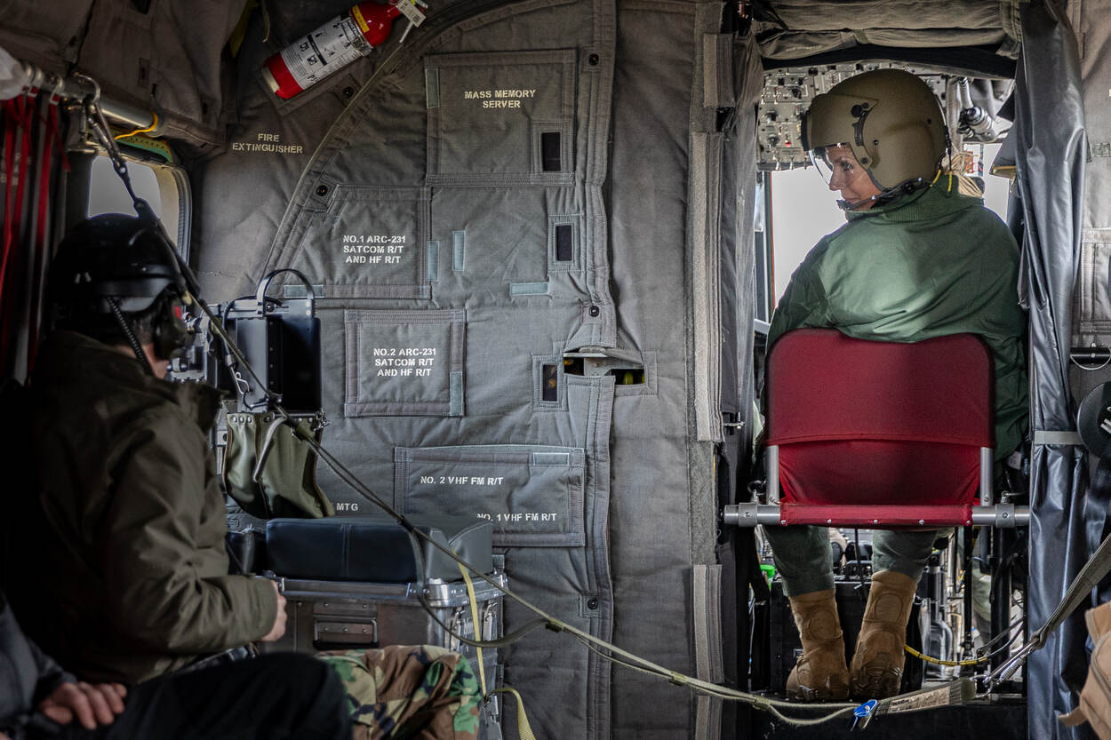 Samen met collega’s van 298 Squadron en het Mobile Air Operations Team (MAOT) oefende Michiel donderdag het zogenaamd blussen van een brand. Tijdens de ‘koninklijke trainingsvlucht’ werd een bluszak gevuld met 7.000 liter water en over de Oirschotse Heide uitgestort. Voor de toegestroomde pers herhaalden de militairen het 'trucje' boven de startbaan van vliegbasis Gilze-Rijen.